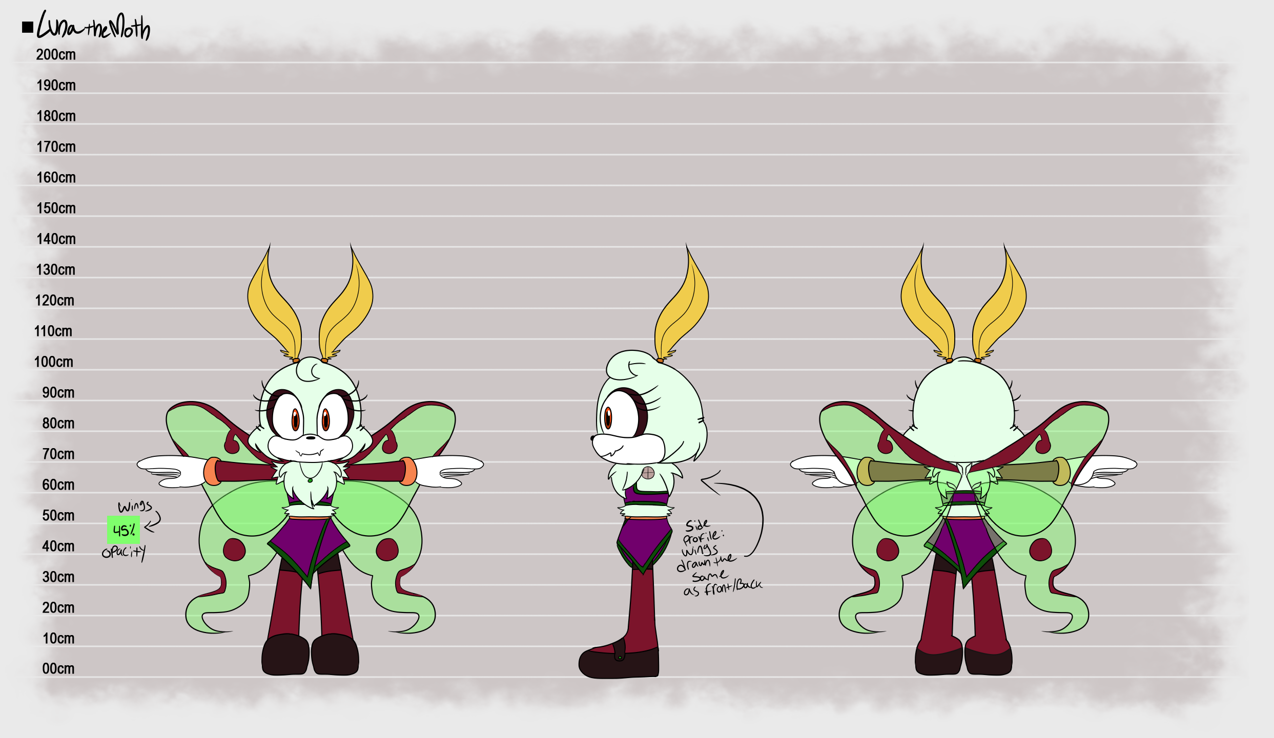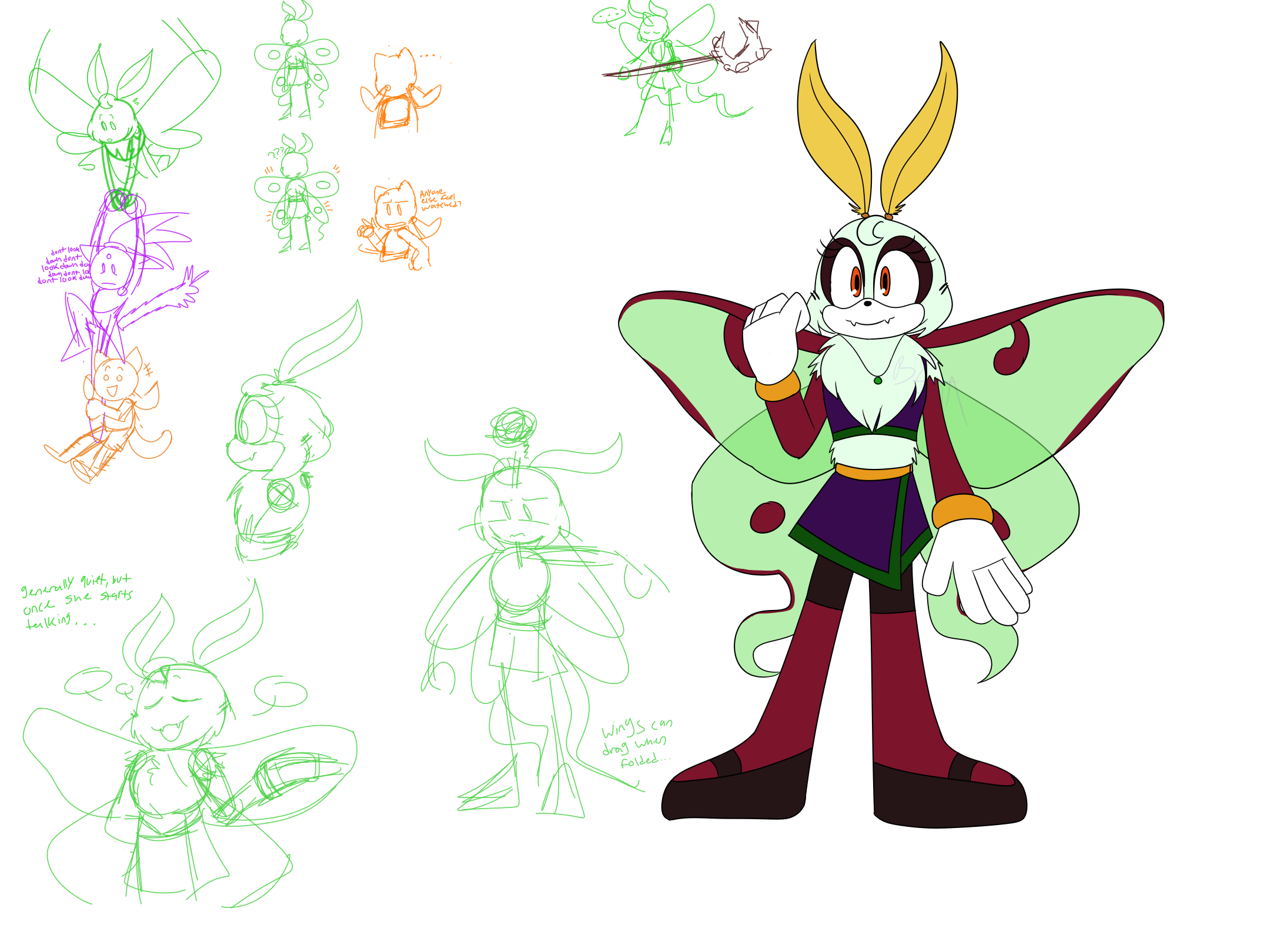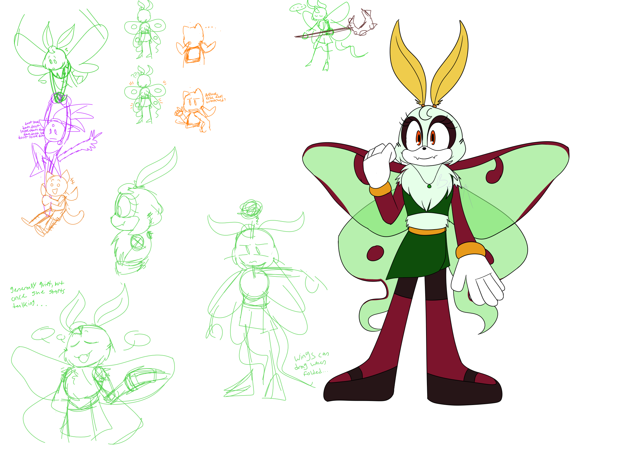 Hailing from a small village, Luna is a reserved yet kind moth who has an inexplicable tie to the Jeweled Scepter. After meeting Blaze and Marine, Luna tends to hang around them, often getting caught up in the latest adventure or event at any current time. Despite having a bit of trouble seeing things at greater distances away, she is an expert flier. The more comfortable she is, the more chatty she tends to get.
